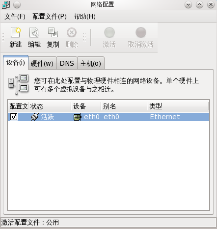 由于最近经常用VPN,所以虚拟机采用了桥接的方式,但是Fedora桥接的时候有了点困难,不像Ubuntu那么顺利,因为安装后Fedora没有对任意一个网卡进行配置,所以profile的地方时空的,还需要自己手工建立一个。点应用程序–>System Settings–>网络配置。
