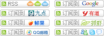 首先找到一套订阅图标,尽量一致的风格(这个为了美观,你懂的),然后对每个图像书写链接,这是最简单的办法,例子就不给了,仅使用html代码就能搞定,唯一的缺点是对每个图像都会有一次http请求,感谢速度会比较慢。