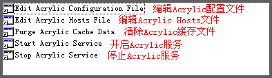 需要注意的是每次修改了hosts后,需要执行Purge Acrylic Cache Data才可以生效。