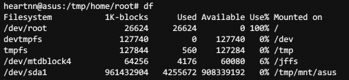 由于格式化的时候填写了卷标为asus,所以挂载到路由器上的路径就是/mnt/asus,这便是挂载的根目录了。