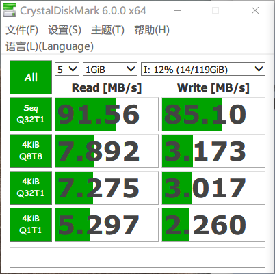 Test : 1024 MiB [I: 11.7% (14.0/119.2 GiB)] (x5) [Interval=5 sec]